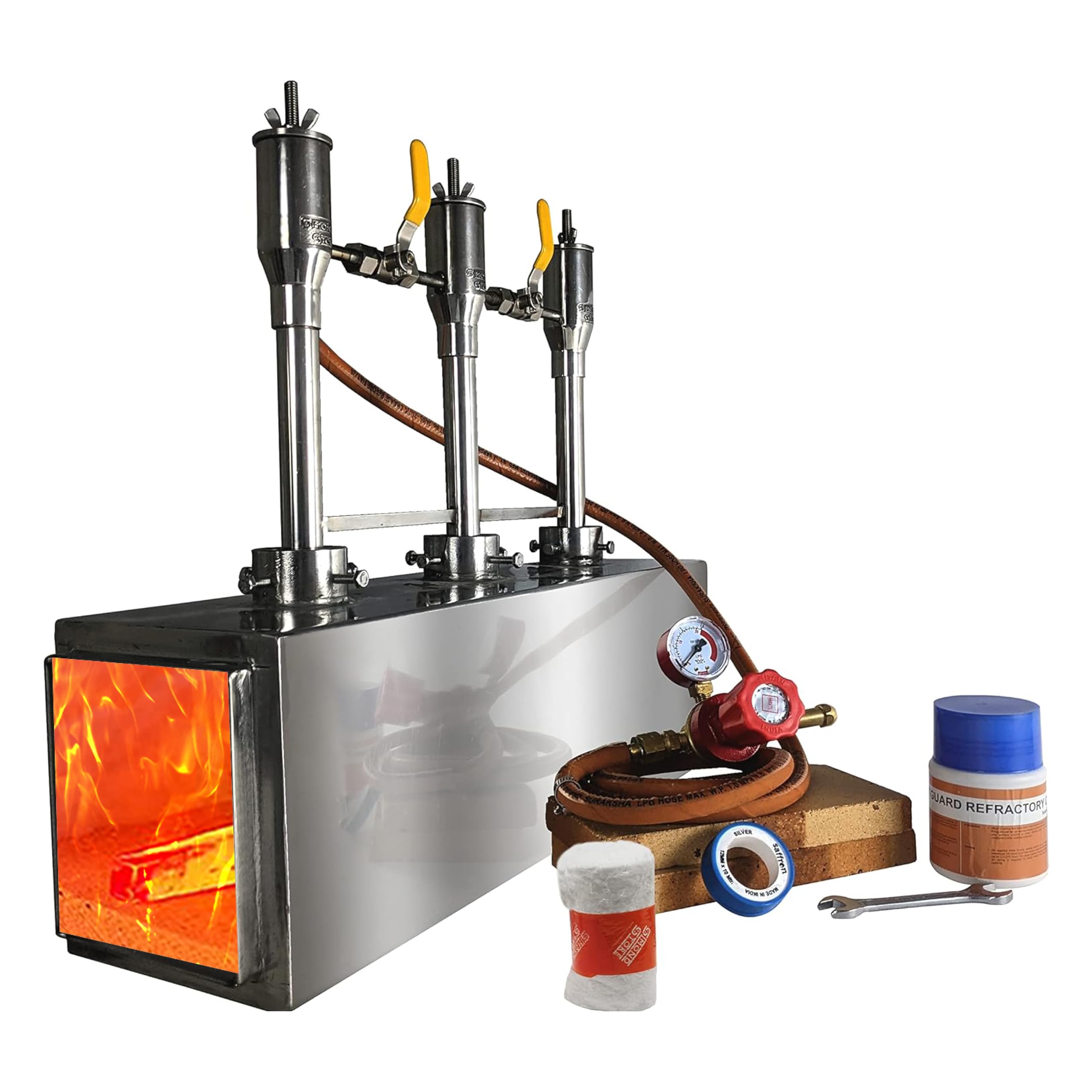 - Wide Application: This Single Burner can be used by Blacksmith, Metalsmith, Jewellers, Craftsman and Hobbyists for Blacksmithing, Forging, DIY project, Melting Furnace, Foundry, Raku Kiln, Heat Treatment, Soldering etc.