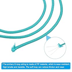 - The rope is used for making a D-loop for archery. The D-loop is an important component in the process of archery. It assists the archers by providing a stable point and maintaining a consistent position when pulling the bowstring, which leads to more accurate and consistent shooting results. Specification Color: Turquoise Material: PP Size: 3 meter x 2.5mm / 9.8 ft x 0.1 inch(Lx D) Packing List: 1 x Archery D Loop Rope Advantage The archery D-loop string is made of PP material, which is wear-resistant, high tensile and durable. The soft loop can reduce friction and wear.This string is 3 meters long, and you can freely cut it to the appropriate size according to your needs. Instruction Cut the string to the desired length, and then tie it onto your bowstring to form a D-shaped loop. NOTE:Please ensure that you tie the rope tightly.