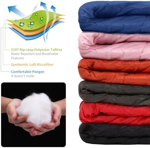 - GIVE YOU A COMFORTABLE SLEEP - Unlike cheap sleeping bags on the market, this 0 degree sleeping bag is lined with high quality pongee, which is not only warm and cozy, but also won't stick to your body, so you can turn over freely and won't make a “rustling” sound. The outer shell is made of 210T polyester fiber, which is abrasion-resistant and breathable, ensuring that you sleep without sweating and providing you with a comfortable sleeping environment.