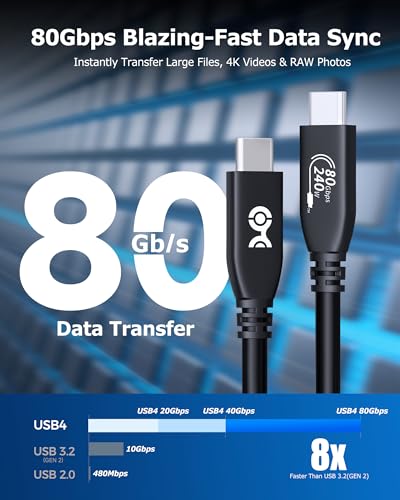 - Blazing Fast Data Transfer Speed: Enjoy lightning-fast data transfer with this USB4 USB-C cable, offering up to 80Gbps bandwidth for next-gen USB 4 devices. Backward compatible with 20Gbps USB4 devices, this USB C to C cable guarantees seamless data transmission across a wide range of devices, making it ideal for both work and entertainment.