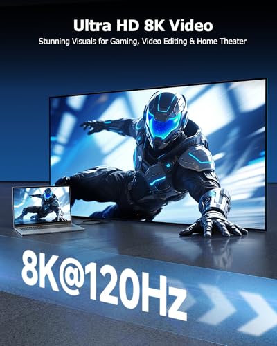 - 8K & 4K Video Support with DP Alt Mode: Experience stunning visuals with this 8K USB C cable supporting DisplayPort Alternate Mode (DP Alt Mode) for 8K@120Hz and 4K@480Hz ultra-high-resolution video. Ideal for gaming, video editing, and streaming, the USB C monitor cable connects USB-C devices to USB-C monitors or docking stations, delivering vibrant, fluid motion.
