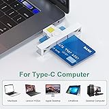 【USB-C/Type C Card CAC Reader】DOD Military Common access card reader for CAC Cards, Government ID, National ID, ActivClient, AKO, OWA, DKO, JKO, NKO, BOL, GKO, Marinenet, AF Portal, Pure Edge Viewer, ApproveIt, DCO, DTS, LPS, Disa Enterprise Email etc 【Certifications Standards】Credit Card Reader support ISO7816 Class A, B and C (5V/3V/1.8V) Smart Cards; CAC military reader compatible with US Military and Government DOD ID cards for secure login and RECOMMENDED by militarycac.com Movement detection with auto power-off Automatic Detection of smart card type Short circuit and thermal protection 【Wide Compatibility, Plug & Play】Chip Card Reader works with virtually all contact chip cards and PC operating systems, including Windows (32/64bit) XP/Vista/7/8/10, Mac OS X and Android OS. Compatible with Android Mobile phones, MacBook Pro 2018/2017/2016, Mac Air, Chromebook, ASUS ZENBOOK, DELL XPS, Huawei Matebook and Other Type C Laptops 【Folding+Mini+Portable】The foldable smart card reader is thumb-sized, durable,without worrying about the power cord or can be attached to a key ring This is a CAC-approved reader.Smart-fold mechanics means thumb-sized, convenient-to-carry without worrying about the power cord or can be attached to a key ring 【Strong Security】CAC Reader ideally suited for use in high-security federal government applications, online banking and credit card payment apps, Windows authentication and Single Sign-On (SSO), Network login, and much more. High transfer speed for efficient transmission and saving time greatly