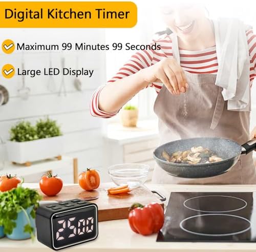 - LED Display Digital Timer: The mini led digital timer countdown from 99:59 to 00:00, or as count up from 00:00 to 99:59. The fcxjtu led display kitchen timer is rechargeable coming with a USB C cable, you no longer have to worry about changing batteries frequently. Note: Power plug/charger is not included. Please use an output 5V/1A plug to charge it.