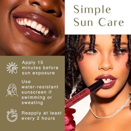 - Revolutionary Sun Protection and Gloss in One: Make It Pop isn't just a lip gloss; it's a pioneering sun care product specifically designed for women of color and loved by women of all colors. With Broad Spectrum SPF 50, it offers maximum protection against UV rays, ensuring your lips are safeguarded while looking glossy and vibrant.