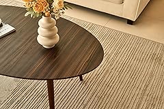 - This elegant oval coffee table is a stunning centerpiece for any living space. Crafted from high-quality wood, it boasts a rich, dark finish that exudes warmth and sophistication. The sleek, minimalist design features a smooth tabletop supported by four tapered legs, creating a harmonious blend of form and function. Measuring at a convenient height, this table provides ample surface area for displaying decorative accents or serving refreshments. Its timeless aesthetic complements various interior styles, making it a versatile addition to your home decor. With its durable construction and classic appeal, this coffee table promises to elevate the ambiance of your living room for years to come.