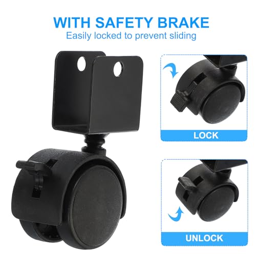 PATIKIL 2" Swivel Caster with 1" U Bracket, 4 Pack 360° Rotation Swivel No Noise Wheel with Brake Total 132 Lbs Locking Caster for Furniture Legs
