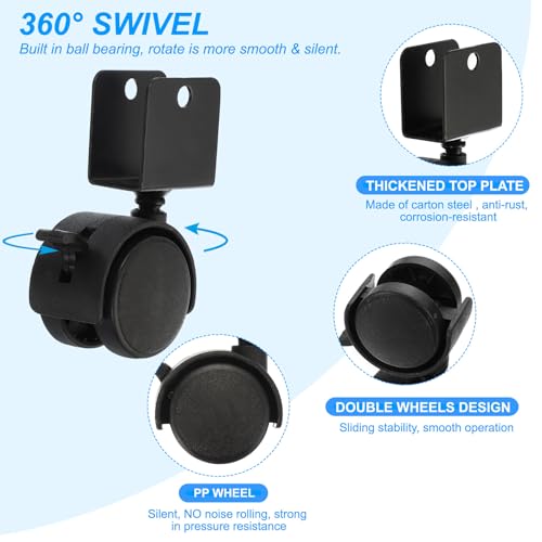 - Application: The U-bracket plate combo set casters are designed to replace old and broken wheels on desks, storage racks, lockers, shoe racks, bookshelves, cabinet, trolley, small machinery, and other furniture. Widely used in homes, offices, libraries, bars, shops, etc. Both smooth tile floors and rough cement floors can be used