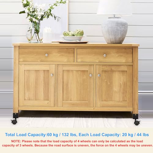 - Total Load Capacity: 60 kg / 132 lbs, Each Load Capacity: 20 kg / 44 lbs; Wheel Diameter: 50 mm / 2 inch; U Clamp Inner Width: 25 mm (1 inch); Packing List: 4 x U-bracket Plate Caster with Brake, 4 x M5*30 Nuts, 1 x Screwdriver