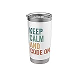 This design is a great choice for programmers and developers who stay cool under pressure. Perfect for any occasion to inspire fellow coders to keep calm and code on while celebrating the joys of programming! Dual wall insulated: keeps beverages hot or cold Stainless Steel, BPA Free Leak proof lid with clear slider