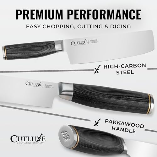 - ERGONOMIC PAKKAWOOD HANDLE: Among other nakiri knives Cutluxe nakiri knife in Japanese style features a comfortable and ergonomic pakkawood handle offering a secure grip. A durable choice for all Japanese knives enthusiasts.