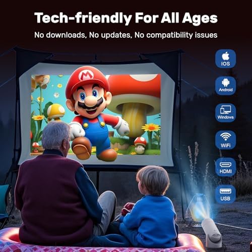 - Plug & Play Simplicity for Kids & Elderly— No App Hassle! Designed for universal plug-and-play ease, this mini portable projector works seamlessly with any device! Instant screen mirroring viawifi projectorconnectivity (2.4G/5G) or wired HDMI/USB—effortlessly connect laptops, gaming consoles, or smartphones (iOS/Android/Windows). No apps, downloads, or tech skills needed—just plug in and project within seconds. A portable projector with wifi and bluetooththat’s perfect for families, kids, and elderly users who crave simplicity.