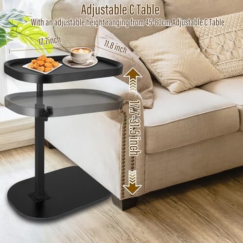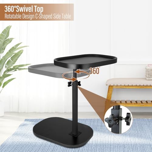 C Shaped End Table - The perfect addition to your room Space-saving Specifications: Material: Steel, Particleboard Product Size: 17.7"Wx 11.8"Dx31.4"H Shape: C shaped side table end table 2 Way to Use : the C shaped table can be use as working station and storage solution. Multi-Purpose side table slides easily into your sofa, bed, or chair for added comfort and convenience. This end tables can works as a coffee table, drink table, laptop table, snack table, or bath tray. Rotational Feature:This side table versatile tabletop and it can be rotated in 360°, which is convenient for placing items, for optimal comfort while working or reading. This side table also offers adjustable height functionality. 17.7''-31.4'' adjustable whitch you can customize the table's height to suit your specific needs. Package Contents: 1 x Side Table