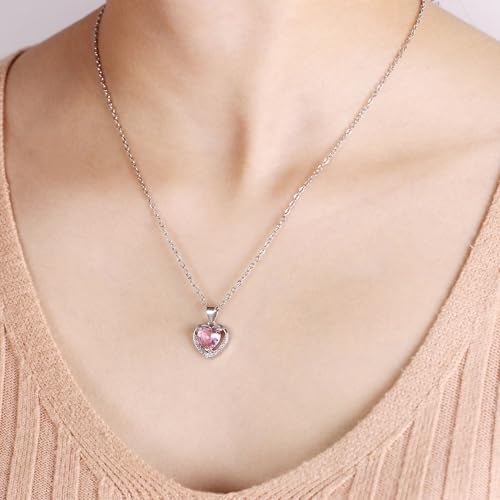 Love Heart Pendant Necklace Platinum Plated Heart Cubic Zirconia Jewelry for Women Mother Friend Birthday Christmas Necklaces Y1109