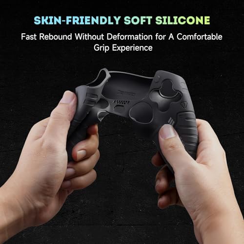 JEMDO Compatible/Replacement Silicone Cover for PS5 Controller, Premium Anti-Slip Soft Grip Skin for PS5 Wireless Controller/DualSense – Enhanced Comfort, Includes 2 Themed Stickers (Black)