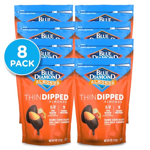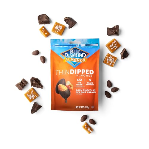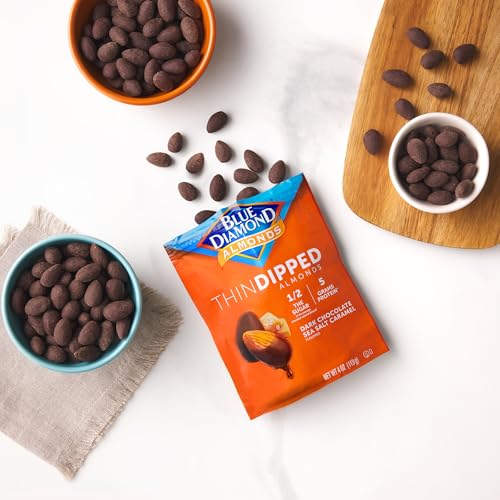 • Blue Diamond Almonds Dark Chocolate Sea Salt Caramel Covered Thin Dipped Snack Nuts, Gluten Free & Non-GMO, 4 Ounce (Pack of 8)