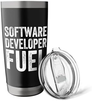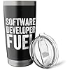Software Developer Fuel Funny Coder Coffee Lover Quote Tech Stainless Steel Insulated Tumbler