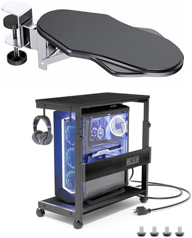 - Pc Tower Stand With Charging Station: This Mobile PC Standing with dual 120V/12A outlets and dual USB ports can power your laptop, smartphone, printer, tablet or any electronic device. Great for keeping an organized workspace. Plus, the PC Tower Rack doubles as a side table to provide additional power for your desk lamp
