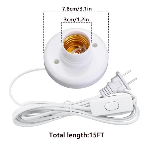 15ft Light Socket with Cord E26/ E27 Light Bulb Socket with On/Off Switch Hanging Light Cord Extension,for Balcony, Garage Installation Lighting