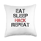 Eat Sleep Hack Repeat Hacking Cybersecurity Technology Throw Pillow