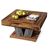 LITTLE TREE Square Coffee Table, Modern Rustic Coffee Table for Living Room, Wooden Table with Adjustable Feet, Brown