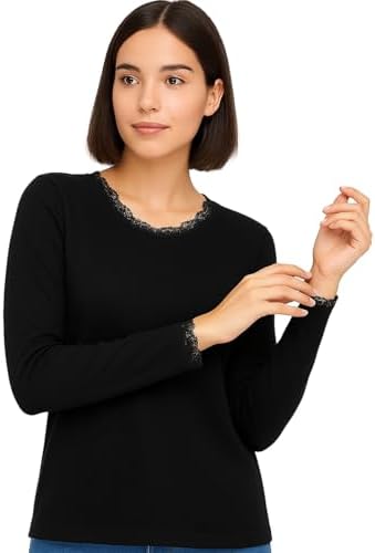 VAVONNE Long Sleeve Undershirt for Women, All Cotton Scrub Shirts, Lace V-Neck Camisole Underscrub Tee Tops