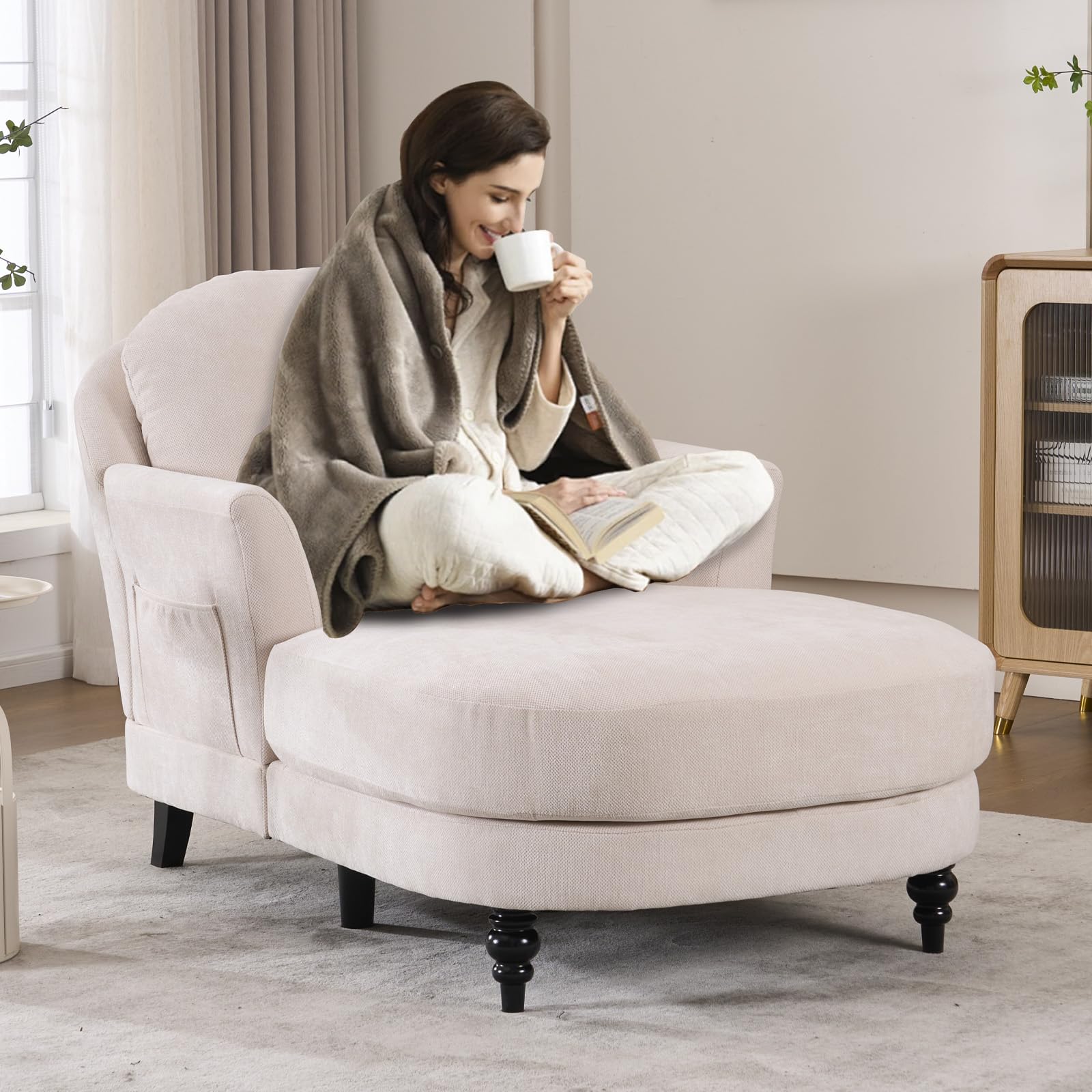 - Wide Arms and Soft Pillows: Rest your arms and lean back with ease. Our chaise lounge chair for bedroom features wide arms and includes three comfortable pillows, providing additional support and enhancing your lounging experience