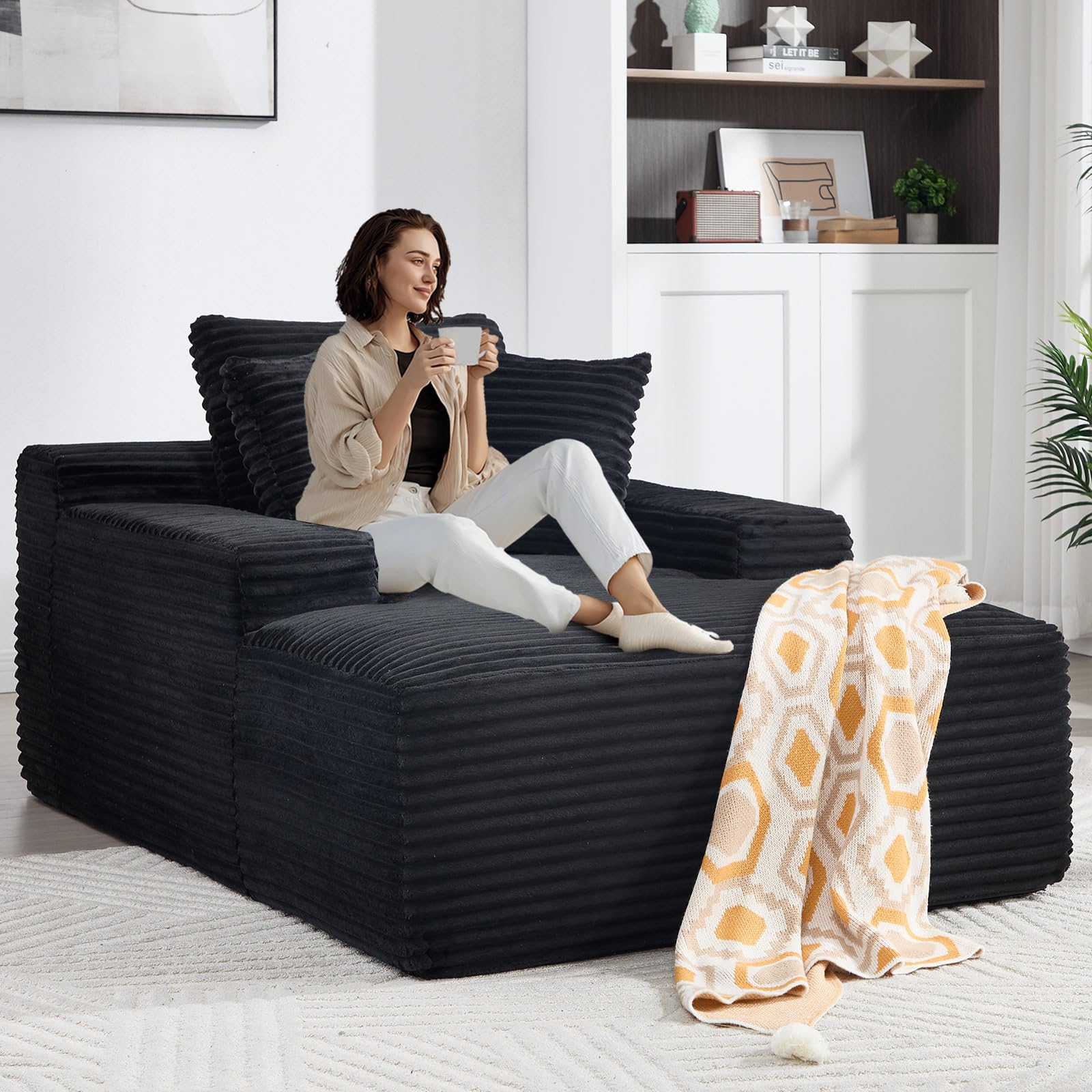 67" Chaise Lounge Indoor, Oversized Chaise Lounge Chair with 3 Comfy Pillows for Living Room Bedroom, Wide Arms Corduroy Fabric High-Density Foam No Assembly Required (White)