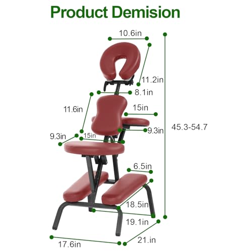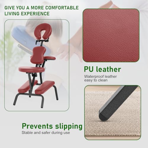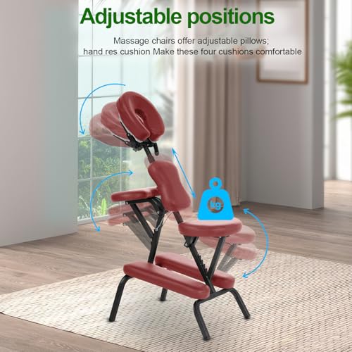 FDW Portable Massage Chair, Tattoo Chair, Foldable Spa Massage Chair, High Density Foam Height Adjustable SPA Salon Chair, Facial Brace for Customers with Backpack (Burgundy)