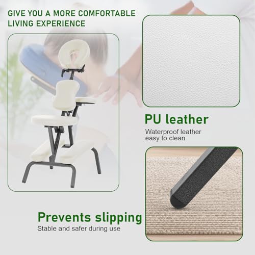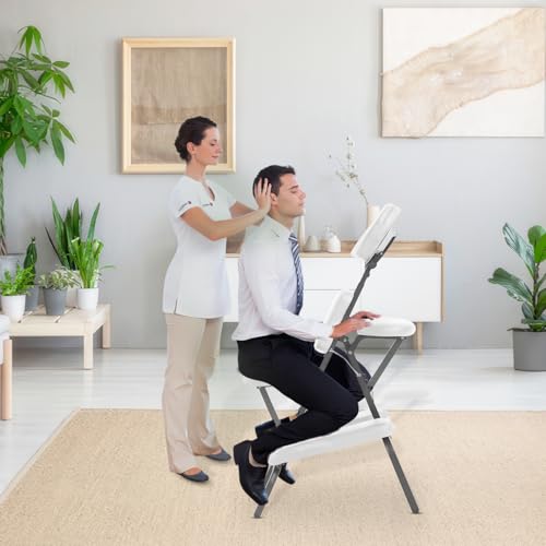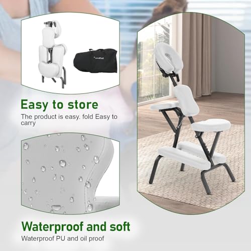 FDW Portable Massage Chair, Tattoo Chair, Foldable Spa Massage Chair, High Density Foam Height Adjustable SPA Salon Chair, Facial Brace for Customers with Backpack (White)