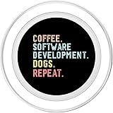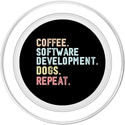 Software Development Coffee Dog design for husband, wife, dad, or mom on birthday, anniversary, or party. Magnetically snaps on and off your phone case so you can easily swap between MagSafe compatible accessories. Adaptor ring included. Make any phone case MagSafe compatible by attaching the adaptor ring. A phone case is required but not included to use the wallet. Printed top is swappable. Close and twist to swap the top with a new design with other compatible PopGrip models.