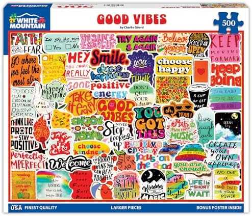 White Mountain Good Vibes Puzzle 500 Piece Happy Puzzles for Adults and Families