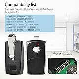 Compatibility: 3089 Garage Door Remote replacement for Linear Multicode Garage Door Opener Remote. Gate opener remote only compatible with garage door opener that use 10DIP switches.Note: Not a universal remote. Adapted model: 3089 Remote replacement for generic 3089 Multicode remote gate opener. Work with 308911, MCS308911, 302850, 302101, 302210, 3060, 306010, MCS306010, 307010, MCS307010, 308301, 1089, 109020, 109920, 109950, 4120, 412001, 4140, 414001, 420001. High quality: 3089 gate openers remote shell is made of high quality ABS material, upgraded chips, longer battery life, durable and less prone to damage. The working distance of the garage door remote is 150 feet. Open the garage door in advance without waiting. Package Includes: 3089 garage gate door opener remote * 2 sunshade clip * 2, manual * 1. Each remote has a visitor clip. You can easily connect it to the car's sunshade clip to the garage door while driving. After-sales service: If you encounter any problems while using the remote, please write to us and we will reply as soon as possible. Note: The product is a spare part (not original). The brand names and related models mentioned above are only for indicating product compatibility.