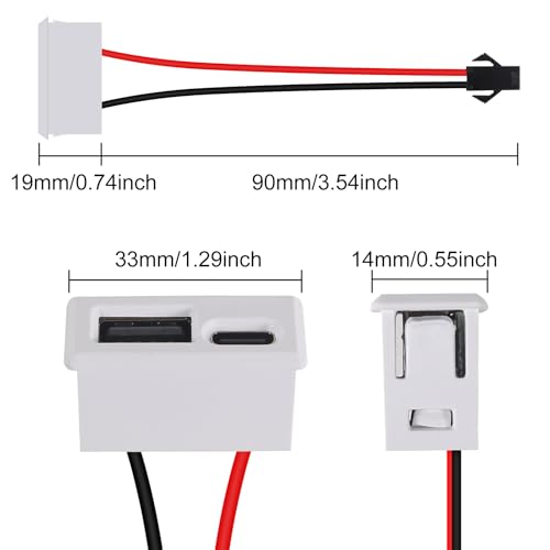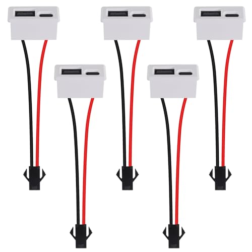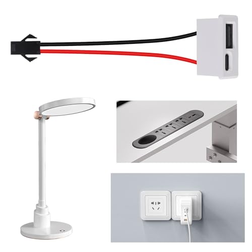 5PCS Black Double Layer USB Female Base Type-C Socket and Female USB Lamp Charging Socket Power Socket with Cable Connector (USB Type-C ARC White)