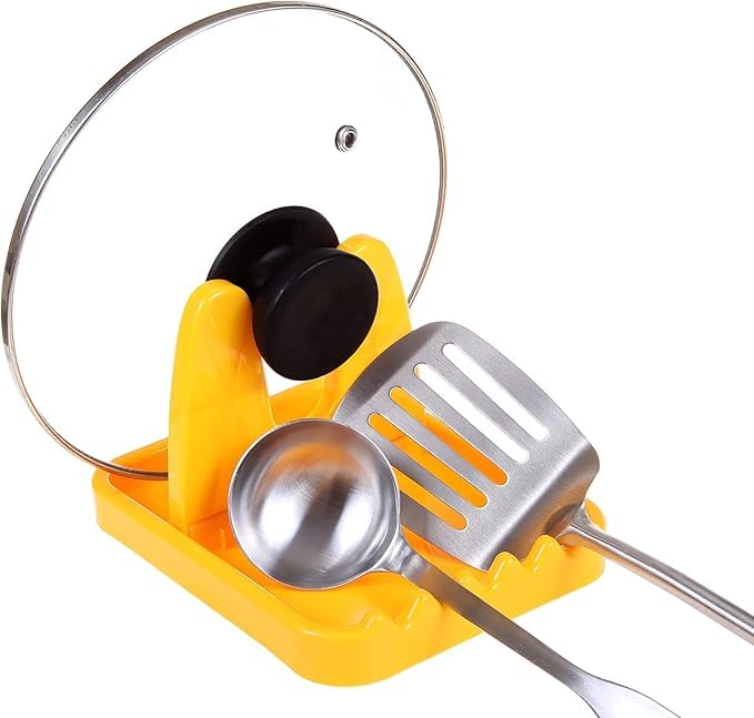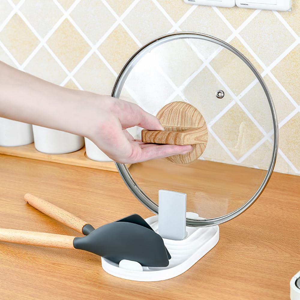 - Non-Slip & Stable Base Thickened ABS base with rubber pads prevents sliding; securely holds lids up to 10” and utensils like spoons, spatulas without tipping