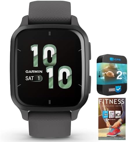 Garmin 010-02701-00 Venu Sq 2 GPS Smartwatch Slate Bezel with Shadow Gray Case and Silicone Band Bundle with Tech Smart USA Fitness & Wellness Suite and 2 YR CPS Enhanced Protection Pack