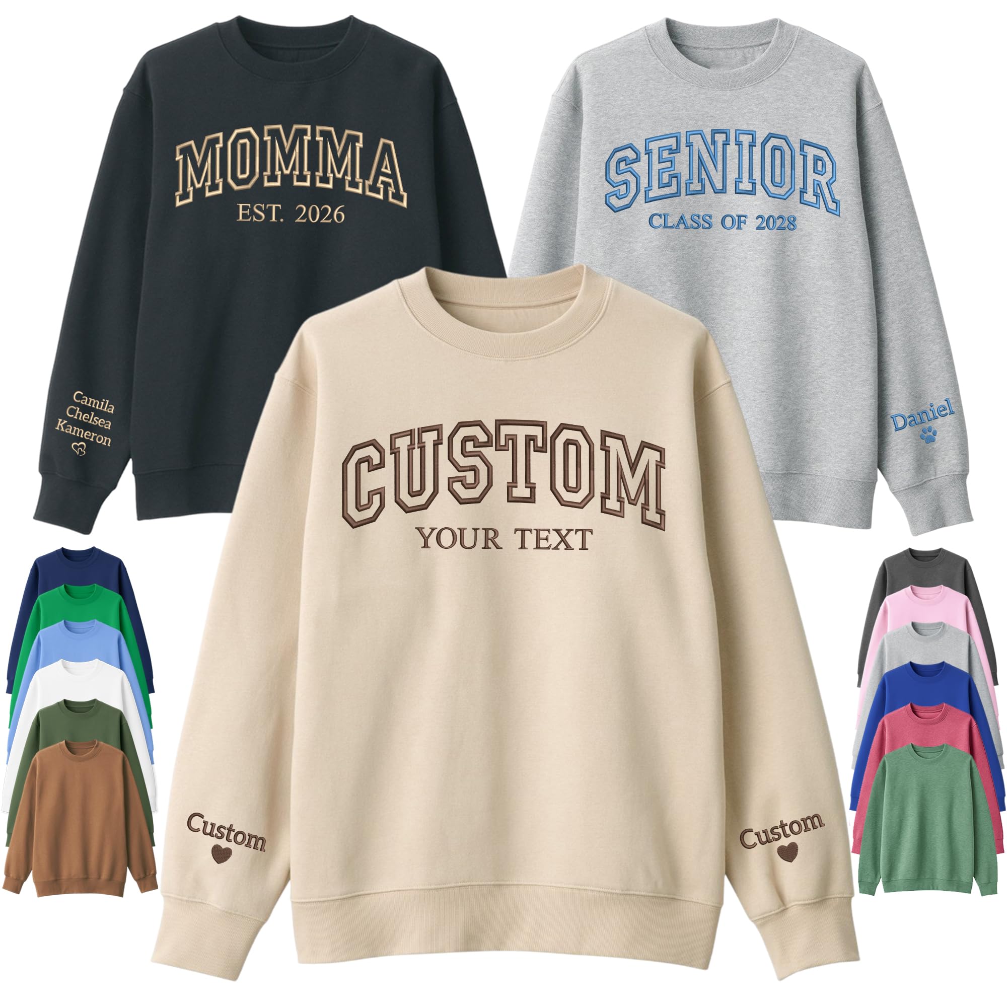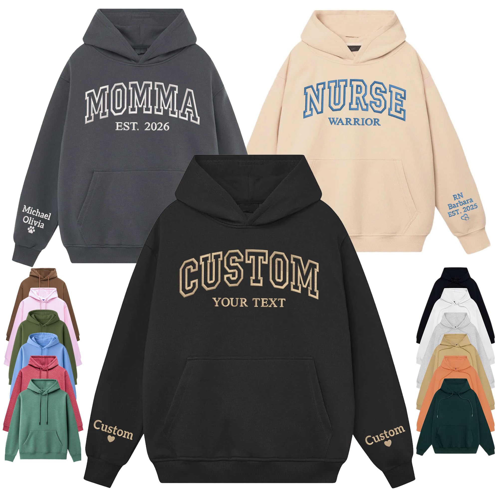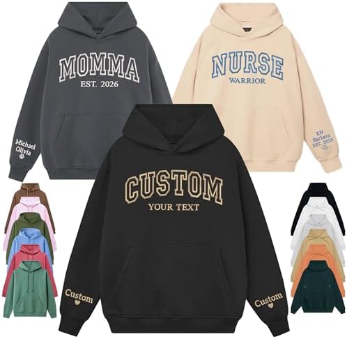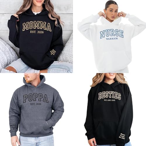 Custom Embroidered Hoodie – Personalized Unisex Hoodie with Name/Text – Embroidered Design on Chest & Sleeve – Hoodie for Men & Women - Gift for Mother’s Day, Valentine, Birthday, Christmas
