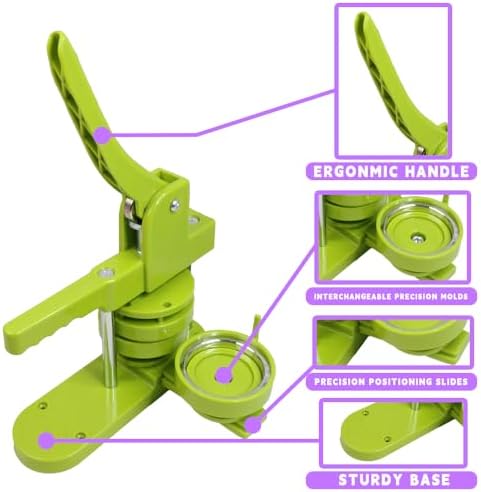 Button Maker Machine Multiple-Sizes, DIY Pin Button Maker Machine Kit with Interchangeable Button-Models&Free Button Parts&Circle Cutter&Wrench Gadget (Green, 32+58mm)