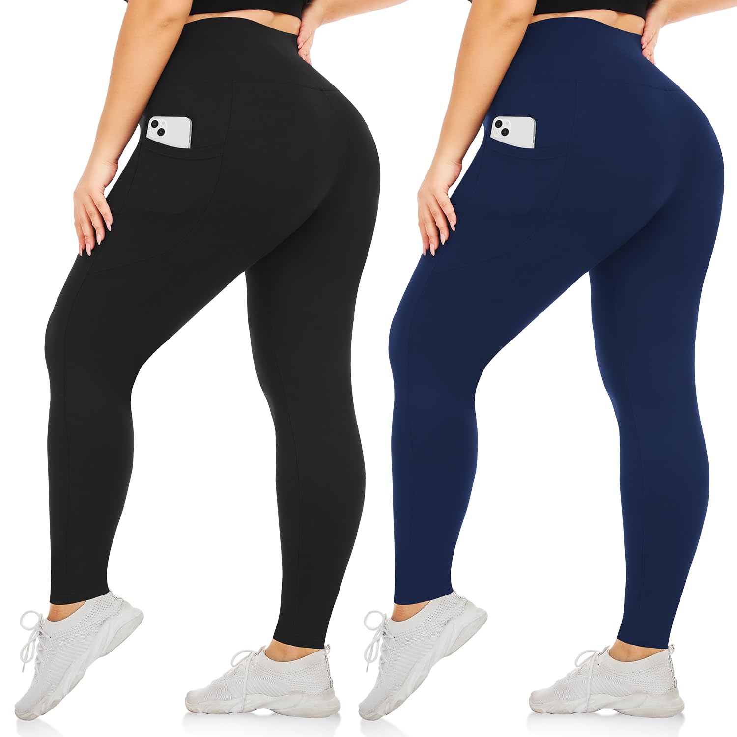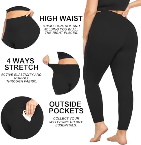 yeuG Plus Size Leggings for Women-Stretchy X-Large-4X Tummy Control High Waist Spandex Workout Black Yoga Pants(Black,Plum Purple,4X-Large