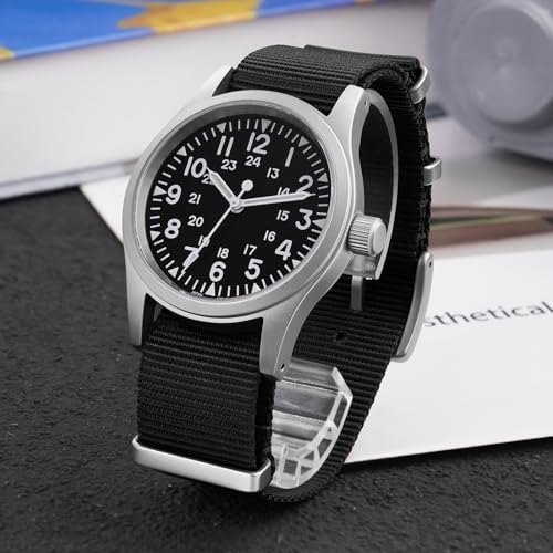 Militado ML05 38mm VH31 Quartz Watch - Domed Sapphire Crystal Field Watch C3 Super Luminous Retro Sweep Wrist Watch for Men 100M Waterproof