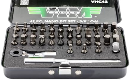 42 PC. 1/4" Half Cut Bit Set - 5/8'' OAL Kit includes a variety of bits: TORX, TORX PLUS, Metric Hex, SAE Hex, Flat/Phillips, Triple Square, Clutch, Mortorq, & Robertson. Compact size makes it a great on-the-go set for your tool bag, car, truck, motorcycle, saddle bag, and more. Included adapter allows for bit ratchet to be used on 1/4" sockets. Extension can be used in the bottom of the bit ratchet for easier use.