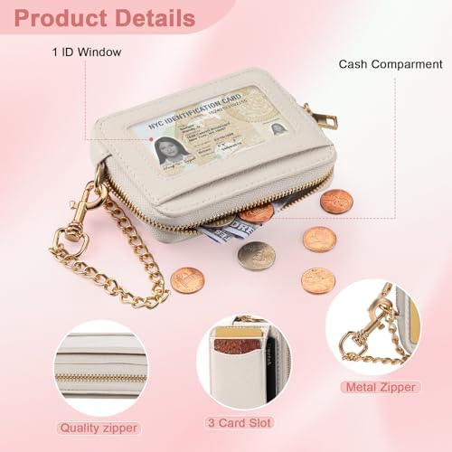 Zip Card Case, Keychain Wallet Card Holder Purse (Beige)