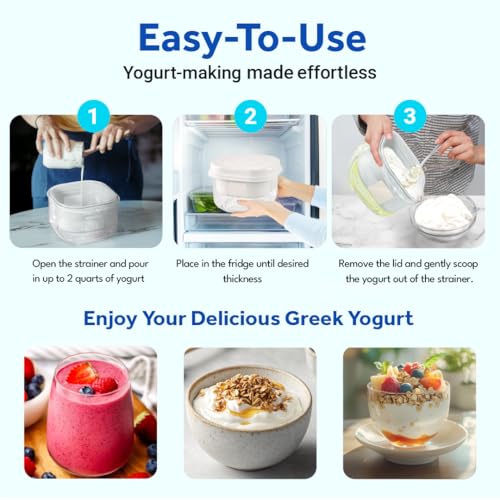 Ultimate Yogurt Strainer - Make Delicious, High Protein, Greek Yogurt - 70% Less Sugar & Lactose - Fine Mesh Nylon Greek Yogurt Maker - 100% BPA-Free & Dishwasher Safe with Large 2.3 Quart Capacity
