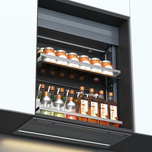 - 【Smart Lifting System】 The Touch Switch function operates the AngelParticle smart spice rack, enabling it to move up and down. With the electric spice rack organizer, you can install your kitchen upper cabinet at a higher position to save space on the kitchen counter and easily lower the smart spice rack organizer for cabinet when you need to use it. Additionally, the smart spice racks automatically stops when it encounters an obstacle.