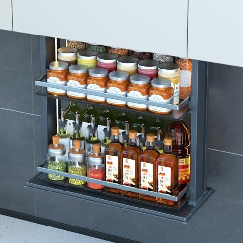 - 【Durable Material】 The smart pull down cabinet organizer is constructed from rust-proof 304 stainless steel and aircraft-grade aluminum alloy, featuring a lightweight design, high strength, and outstanding corrosion resistance.