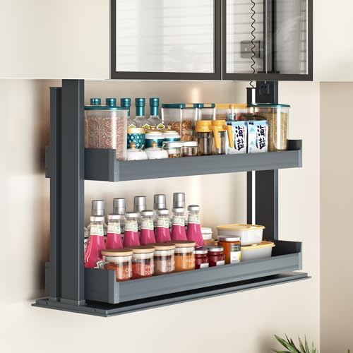 - 【Durable Material】 The smart pull down cabinet organizer is constructed from rust-proof 304 stainless steel and aircraft-grade aluminum alloy, featuring a lightweight design, high strength, and outstanding corrosion resistance.