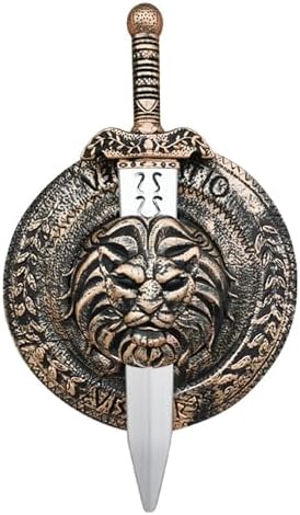 • The sword fits in slots behind the lion medallion molded into the center of the shield
