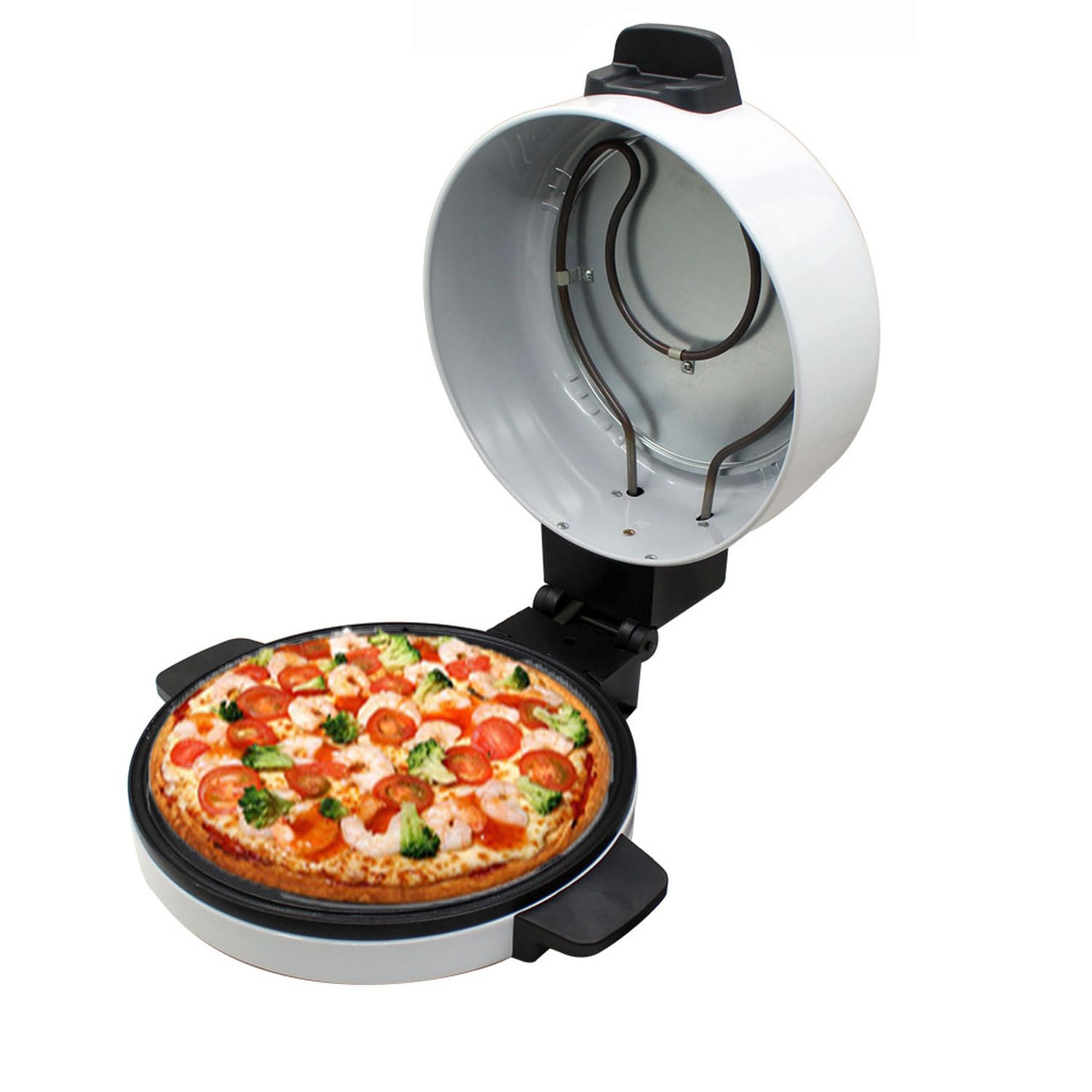 - ELECTRIC POWERED: Plug your Piezano Indoor Pizza Oven into the nearest outlet. Place it on your countertop for everyday convenience. Base suction cups on the bottom prevent it from sliding all over the place. PLEASE NOTE: The Piezano Pizza Oven utilizes a 3 prong plug, NOT 2 prong.