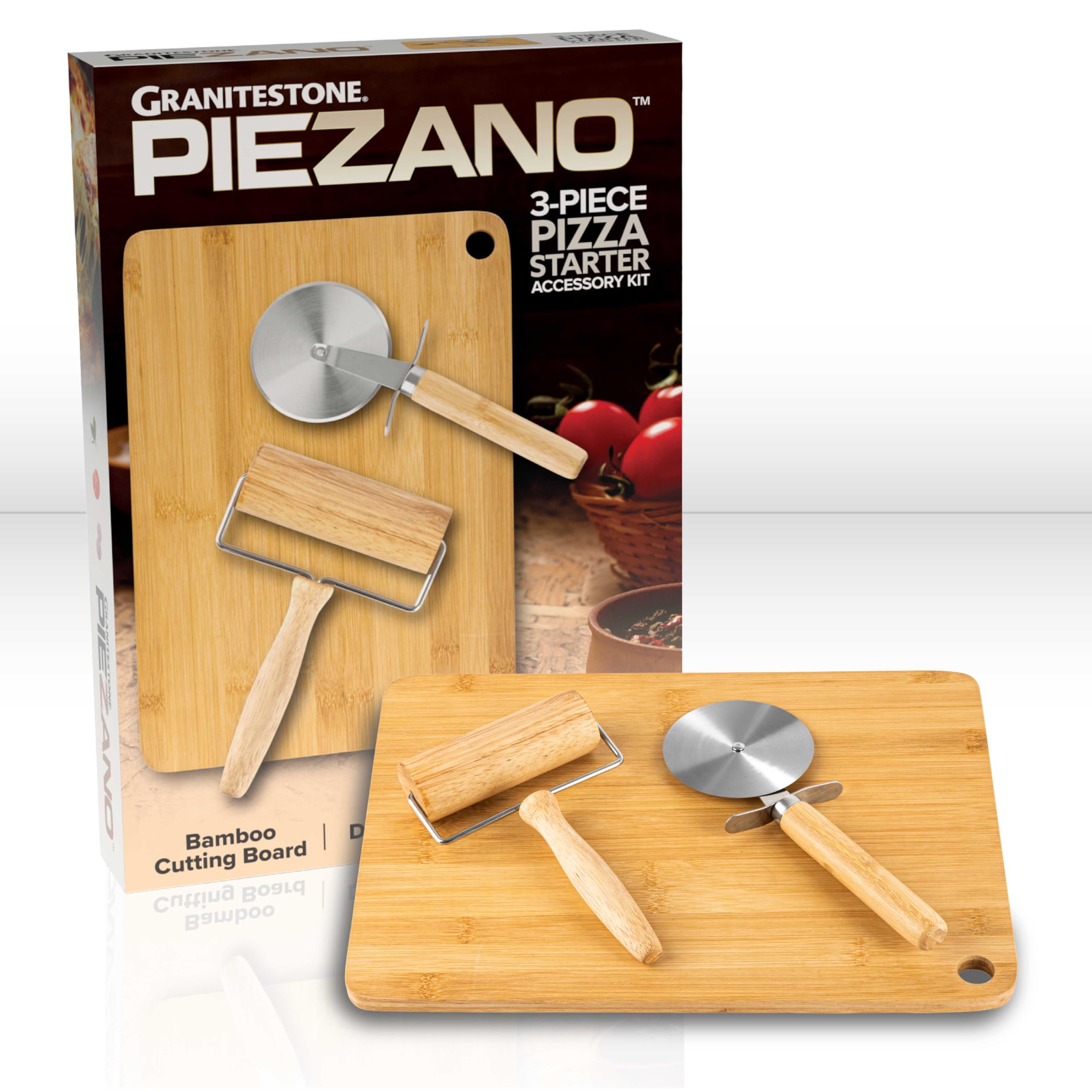 - EXCLUSIVE BUNDLE: PIEZANO Pizza Oven with Pizza Cutter + Dough Roller by Granitestone. The Piezano 3-piece pizza accessory set features the tools you need to serve pizza to your hungry family and friends. Pair it with the Piezano pizza oven for the full experience.