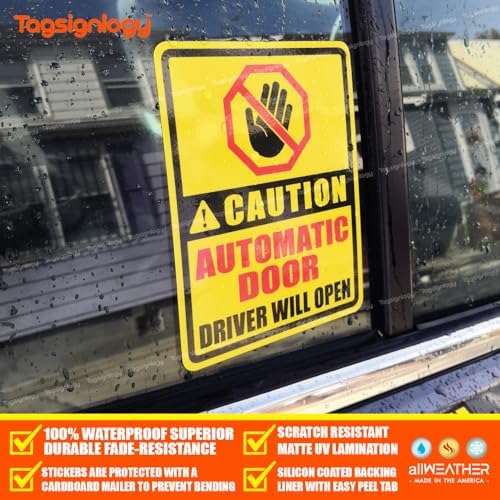 (2 pcs) Caution Automatic Door Driver Will Open Dont Pull Safety Notes for Passenger & Driver UB LY Taxi Car Service Warning Sign UV Weatherproof Waterproof Vinyl Stickers