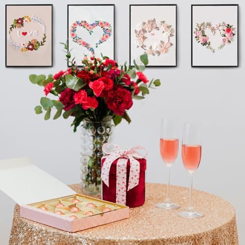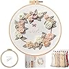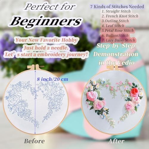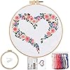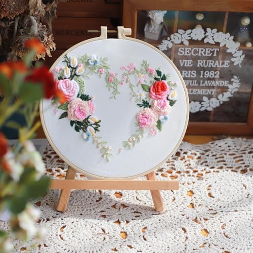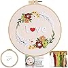 FONNUY Love Heart Crewel Embroidery Kit for Beginners, Pre-Stamped Pattern Kits for Adults with Hoop, Easy to Follow Color Thread Needlework, 8'' Hoop (Floral Heart)